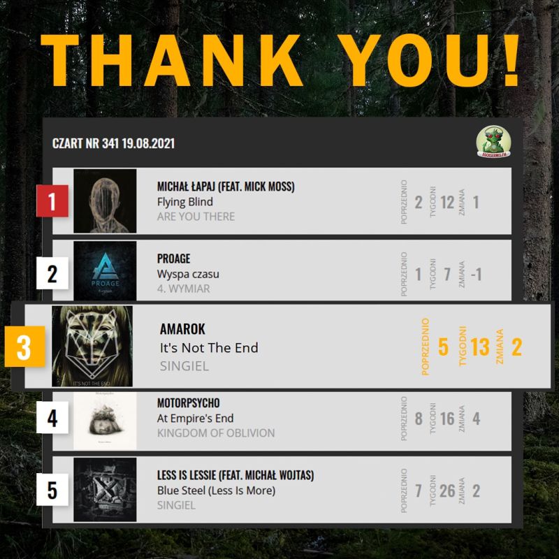 Thanks to your activity, “It’s Not The End” has been on the Radio Rockserwis FM list for 13 weeks!